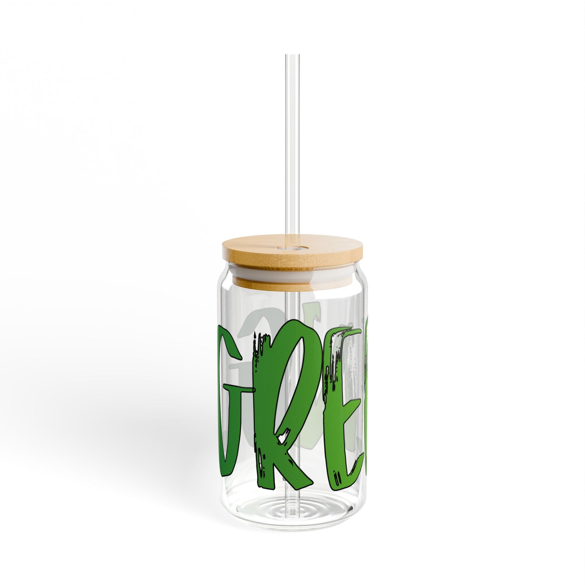 Eco-Friendly Sipper Glass, Green Lettering, Reusable Drinkware, Perfect for Kids & Adults, Summer Parties, Eco Gifts